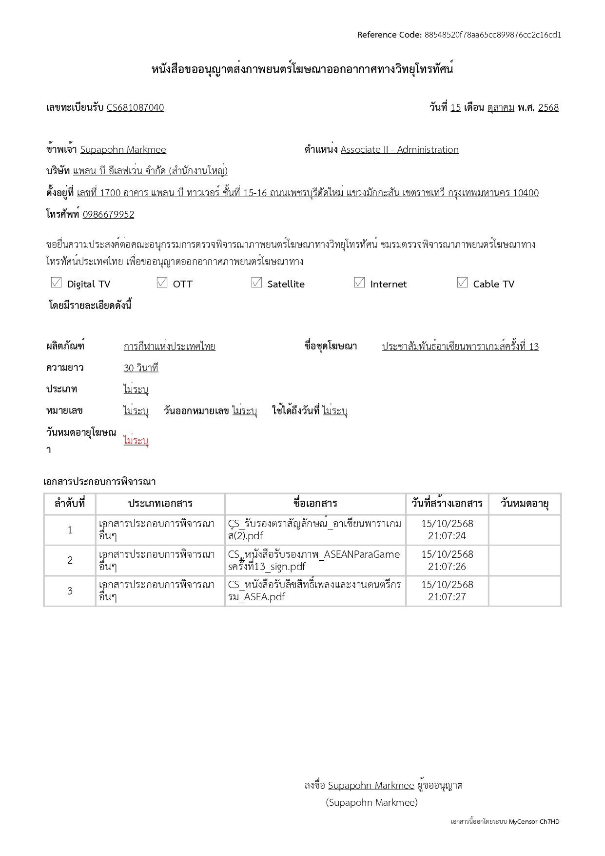 การแข่งขันกีฬาอาเซียนพาราเกมส์ ครั้งที่ ๑๓ พ.ศ. ๒๕๖๘ (ค.ศ. ๒๐๒๕) ระหว่างวันที่ ๒๐ – ๒๖ มกราคม ๒๕๖๙ ณ จังหวัดนครราชสีมา