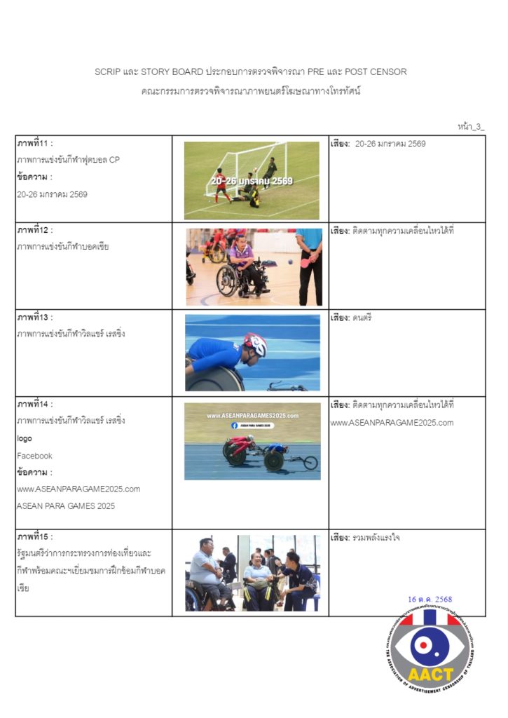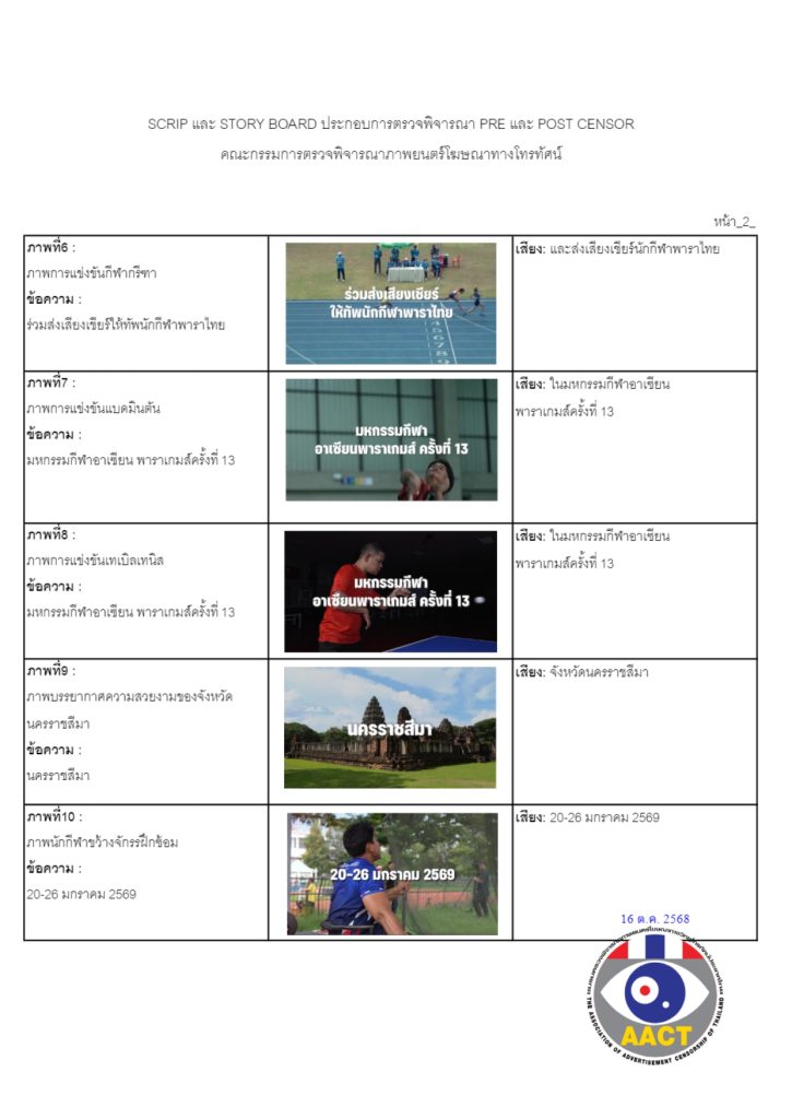 การแข่งขันกีฬาอาเซียนพาราเกมส์ ครั้งที่ ๑๓ พ.ศ. ๒๕๖๘ (ค.ศ. ๒๐๒๕) ระหว่างวันที่ ๒๐ – ๒๖ มกราคม ๒๕๖๙ ณ จังหวัดนครราชสีมา